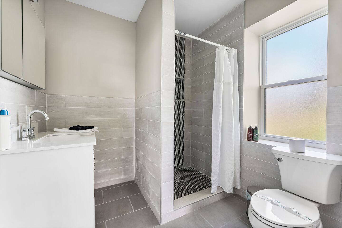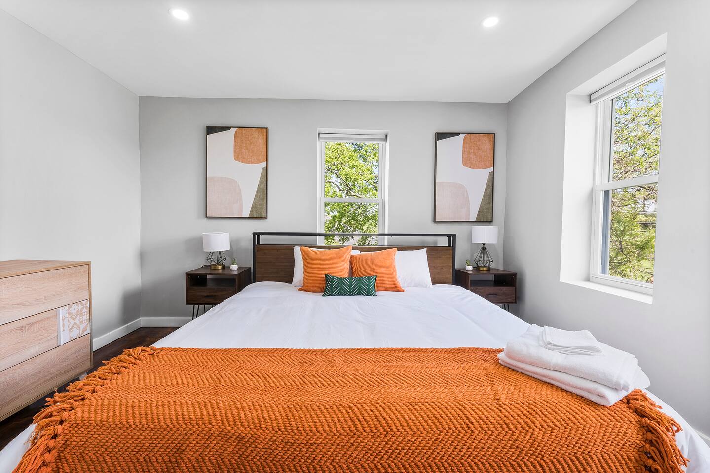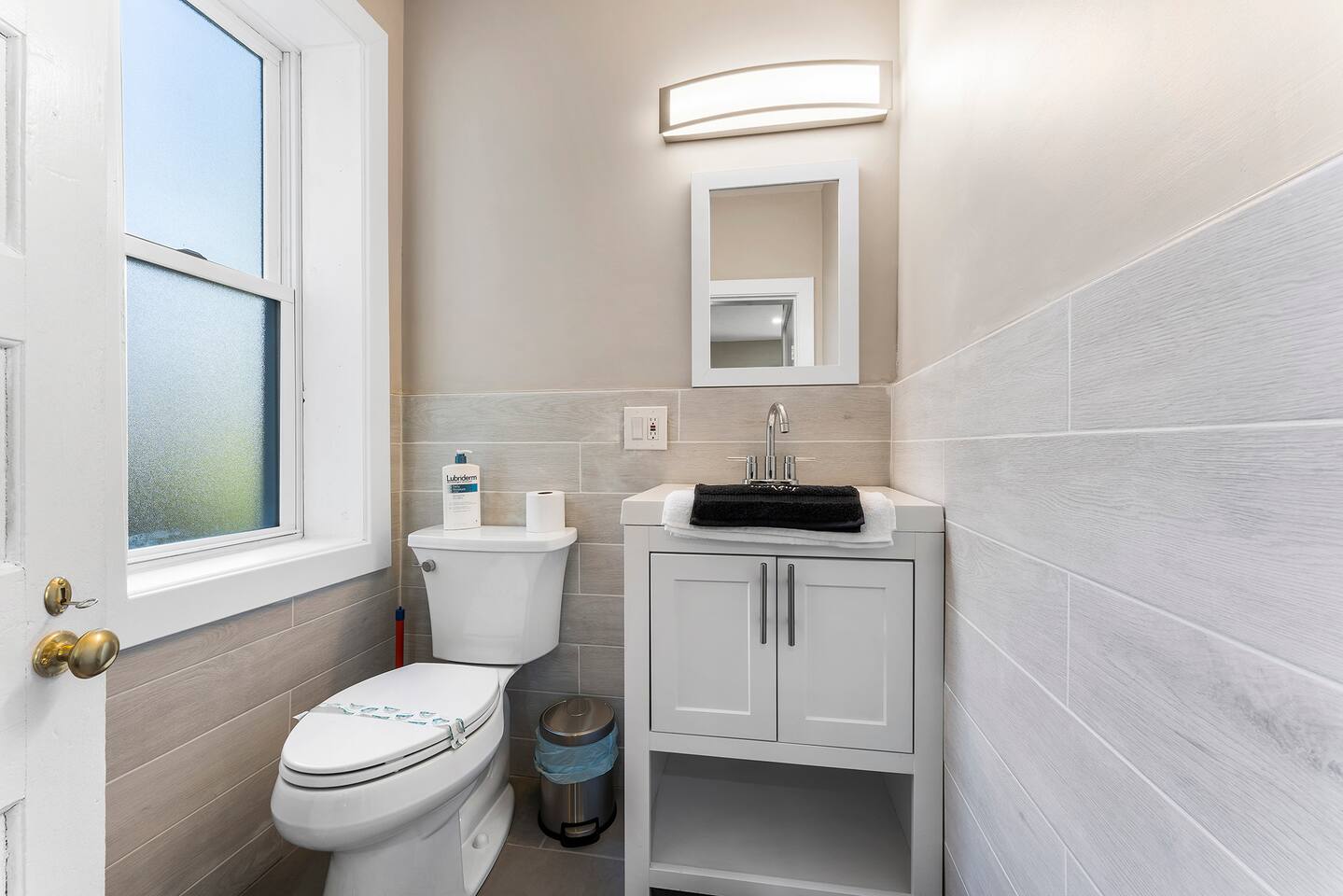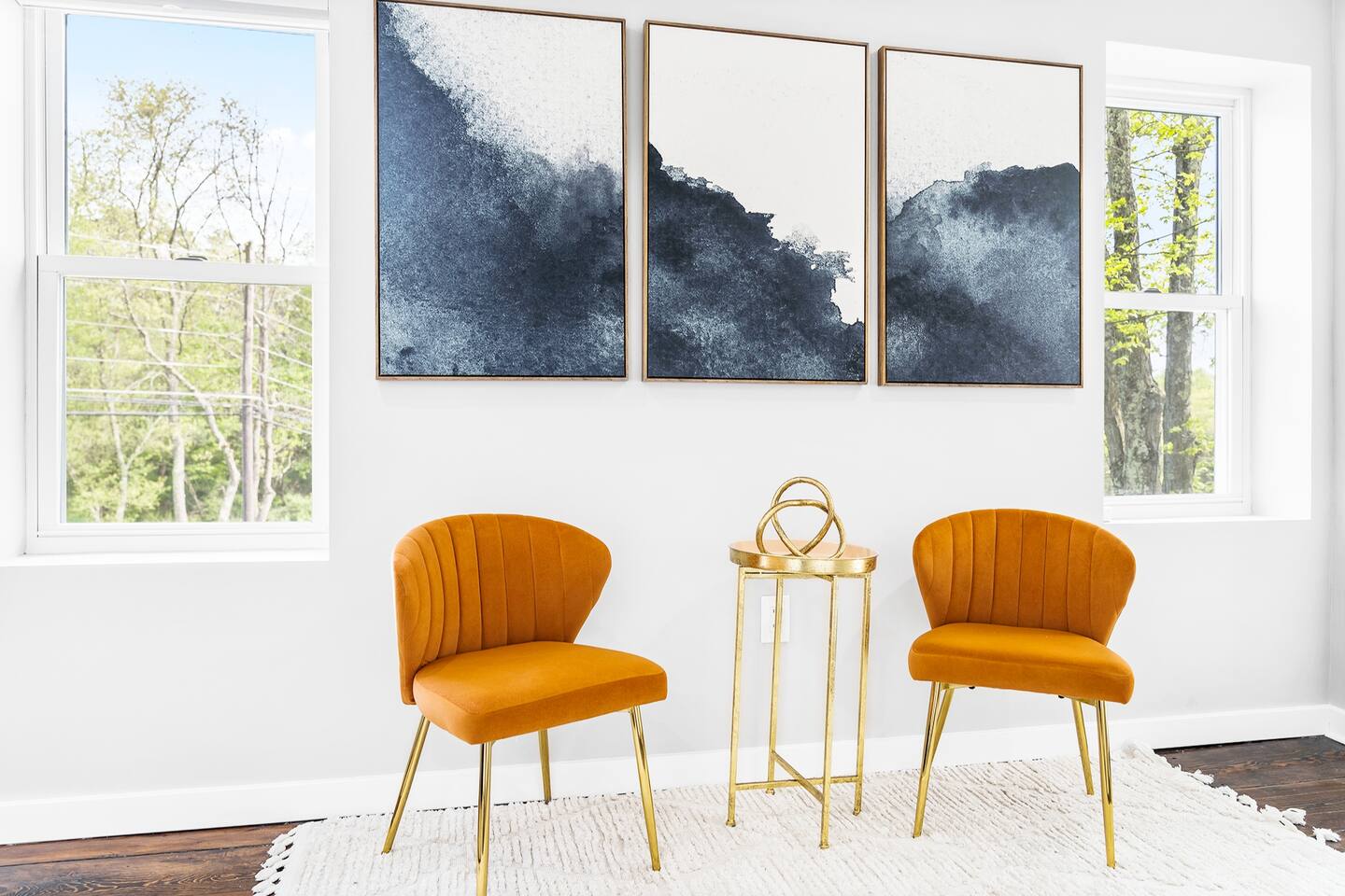 Turn of the century farmhouse with restored hardwood flooring, modern kitchen, and baths. KEY FEATURES: ☀ 5 large bedrooms; 3 double beds, 2 King beds ☀ 3.5 bathrooms ☀ Fully-equipped kitchen with modern appliances ☀ Spacious, modern lounge with fun games ☀ Sunny patio + outdoor lounge spaces ☀ Washer + dryer ☀ Pets allowed. $15/per day, max of 3 pets ☀ 14 mins from all the outdoor resort adventure parks ( e.i. Jim Thorpe River Adventure, Kalahari Resort & Camelback Mountain Adventures) ☆☆ BEDROOMS ☆☆ Our guest house has five bedrooms and can accommodate up to ten guests comfortably. The rooms are spread out throughout the home to make sure everyone has plenty of peace. Three of the bedrooms have luxury double-sized beds, and the two bedrooms have a king-sized bed. The expertly designed bedrooms feature neutral color tones, large windows, vinyl plank flooring, high-end linens, and locally inspired artwork. Each bedroom is designed to reflect the natural beauty right outside, and give guests a comfortable place to unwind after a busy day. Our playful space is perfect for kids or adults and is just steps from the family bathroom. ☆☆ BATHROOMS ☆☆ 3.5 Bathrooms, located on the ground and second floor. Whether you want to soak your muscles after a day of shopping or enjoy a hot steamy shower first thing in the morning, these bathrooms give you the space and modern amenities to make you feel pampered. ☆☆ KITCHEN & LOUNGE ☆☆ The spacious kitchen features bold black tilework, wooden countertops, custom cabinets, and stainless steel appliances. The sleek and stylish kitchen is big enough for multiple guests to move around, and is complete with cooking essentials, including a Keurig, coffee pods, and creamer. The kitchen flows effortlessly into the living room, which is a sun-filled space designed to bring everyone together. Here you’ll find grand, lofty ceilings, and plenty of comfy seating on a massive sectional couch. Host a movie night on the 60-inch smart TV, or break out the board games for more family fun. The walls of windows offer stunning nature views, and the nature-inspired decor ties it all together. If it’s important to you to get quality time together while on vacation, you’ll appreciate the formal dining area. Serve a family-style meal here and share your adventures! Downstairs, the ground floor has been transformed into a family-friendly recreation center, complete with board games, and comfortable lounge furniture. ☆☆ OUTSIDE SPACE ☆☆ Our guest house offers multiple ways to enjoy the outdoors. Our backyard is dotted with trees and is perfect for running and playing.
